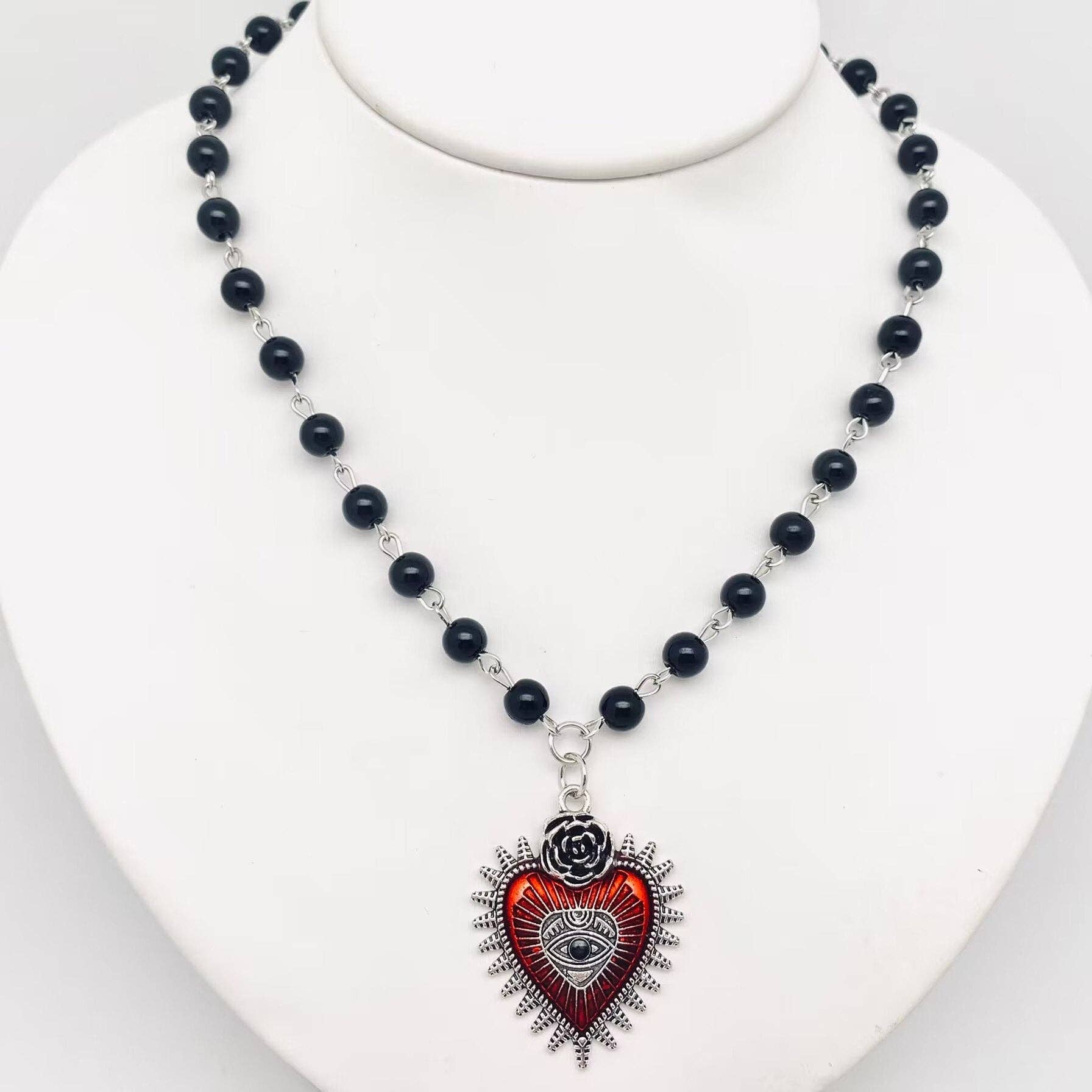 Gothic Red Devil's Eye Pendant Necklace