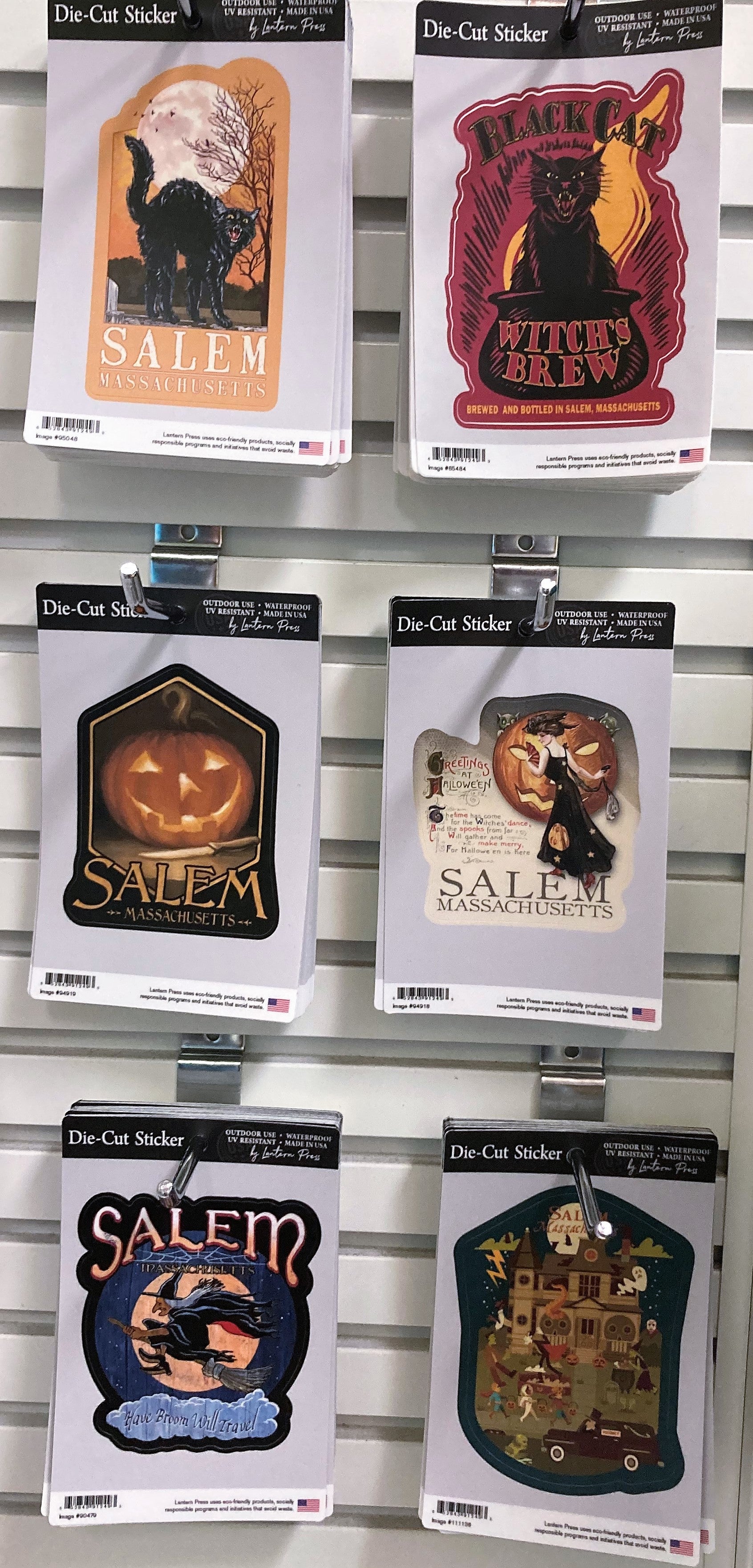 Salem themed full color stickers for your locker, laptop, car, skateboard, or whatever. Waterproof and UV resistant. Stickers are approximately 3 1/2" - 4".