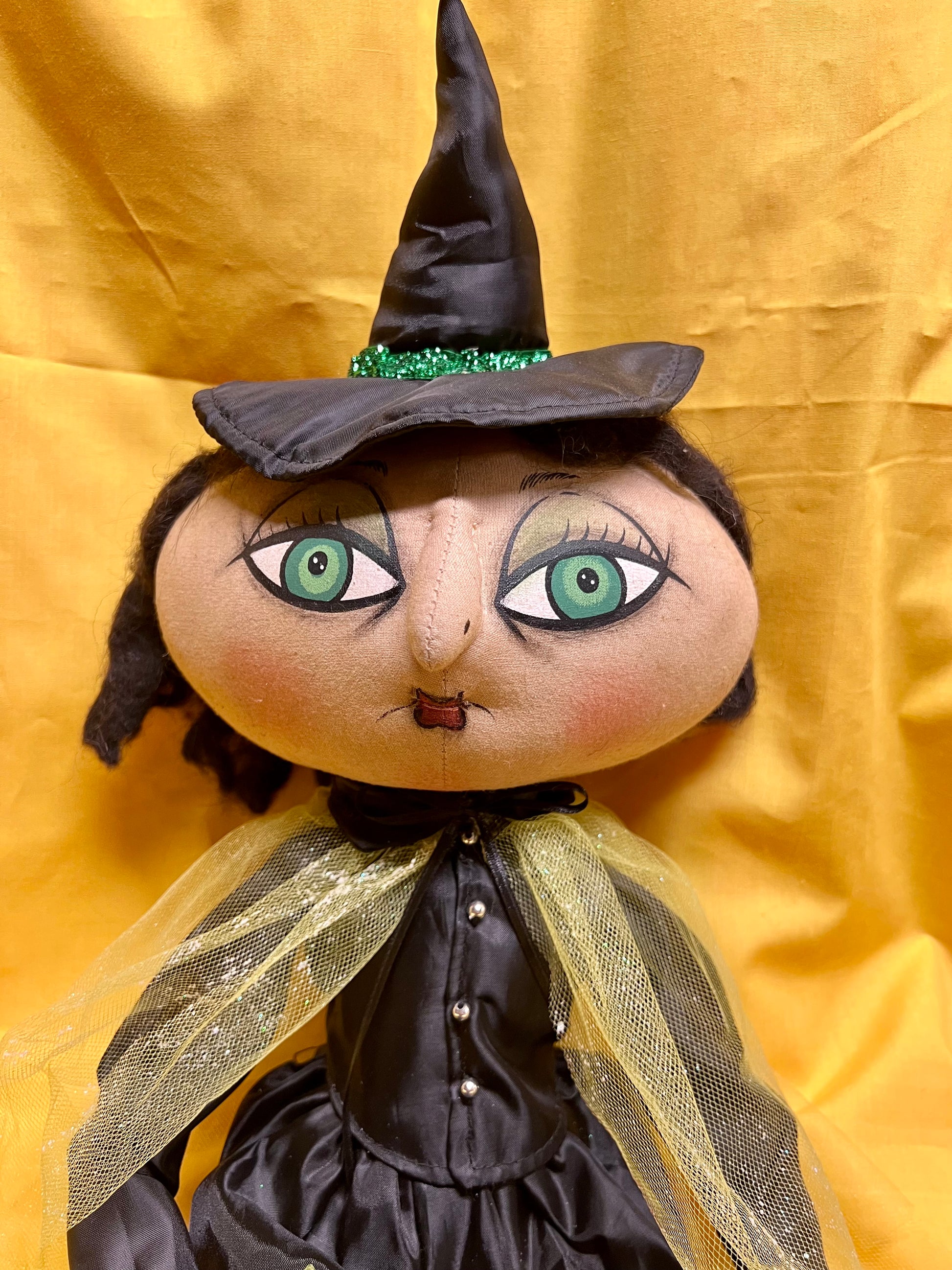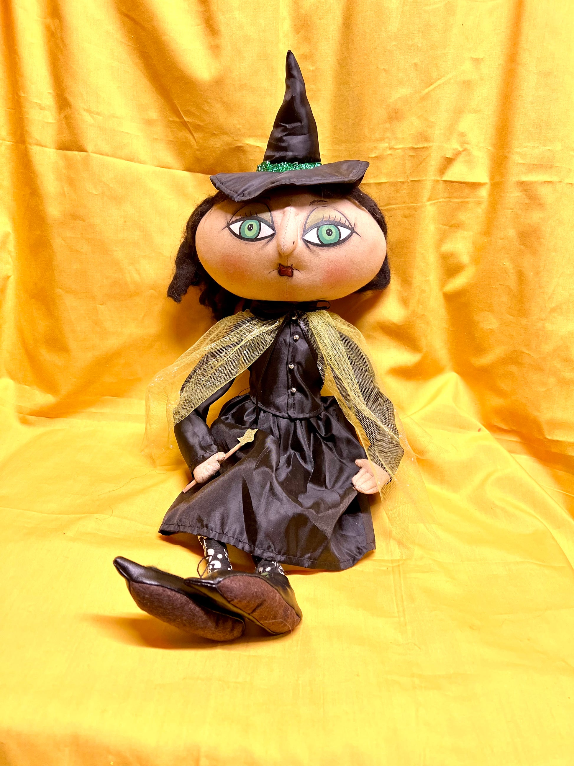 From the creative mind of Joe Spencer comes the witch "Xanzabelle". Dressed in black and green, with bright green eyes in a whimsically wide face. She is 24" in length and sits 14" tall.